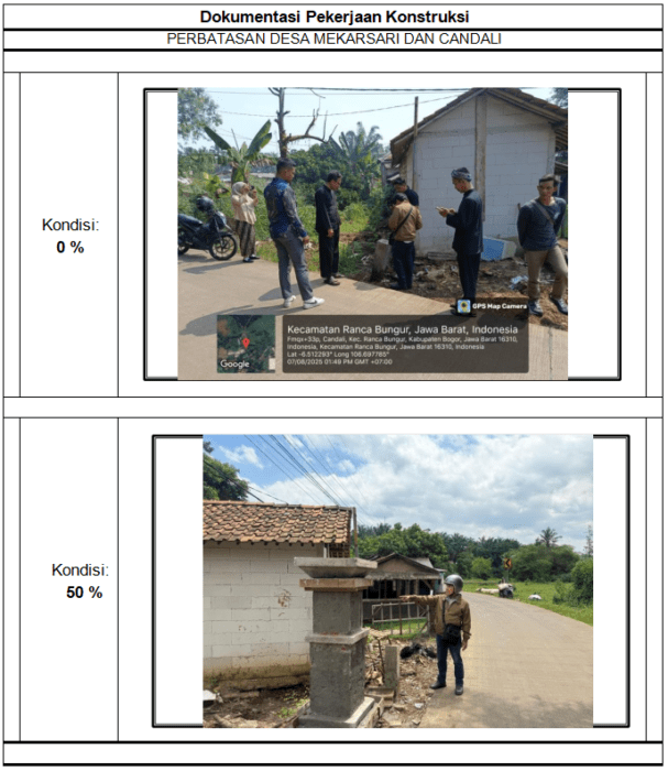 Pemerintah Kabupaten Bogor melalui Dinas Perumahan, Kawasan Permukiman dan pertanahan terus berupaya meningkatkan pelayanan dan tata kelola wilayah melalui berbagai program pembangunan yang bermanfaat bagi masyarakat. Salah satu wujud nyata dari komitmen tersebut adalah pembangunan Tugu Batas Desa yang berlokasi di 8 titik perbatasan Desa.