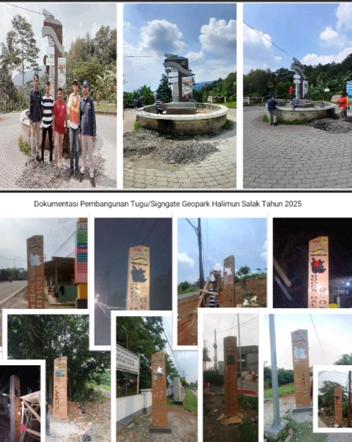 Sebagai bagian dari upaya penataan dan pengembangan kawasan Geopark Halimun Salak, yang terletak di wilayah barat Kabupaten Bogor, Pemerintah Kabupaten Bogor melaksanakan pembangunan Tugu/Signgate dan papan penanda sebagai simbol identitas kawasan geopark. Tugu dan papan penanda ini berfungsi untuk mempertegas dan memperkenalkan Geopark Halimun Salak sebagai destinasi wisata geologi yang memiliki nilai penting baik secara ilmiah maupun budaya.