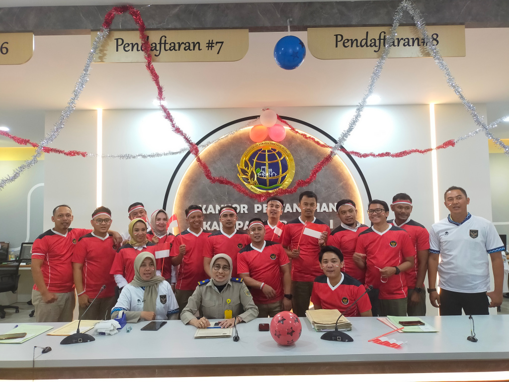 Kantor Pertanahan (Kantah) kabupaten Bogor 1, memberikan pelayanan kepada setiap pemohonnya dengan bernuansa merah putih jelang pertandingan Uzbekistan U-23 Vs Indonesia U-23 di perhelatan seminal final Piala Asia U23 AFC tahun 2024, malam nanti.