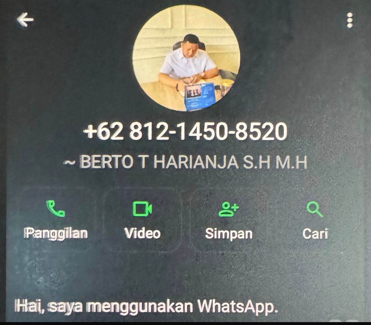 Foto: Nama dan Foto Berto Tumpal Harianja, S.H., M.H yang dicatut pelaku penipuan. (Ist).