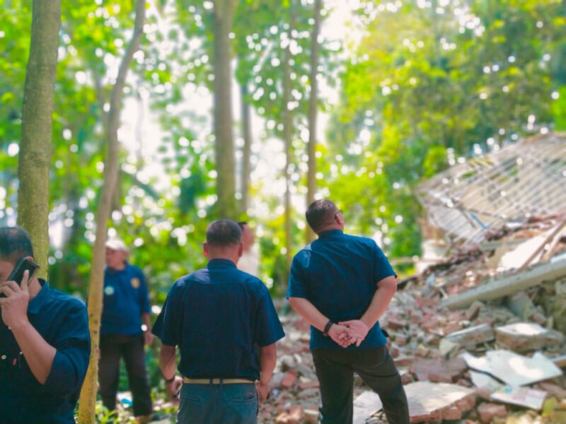 “Adapun kerusakan fisik meliputi dua ruang kelas, satu ruang guru, satu ruang kelas terdampak kerusakan, turap penahan tebing sekolah bergeser,” ungkap Warman.