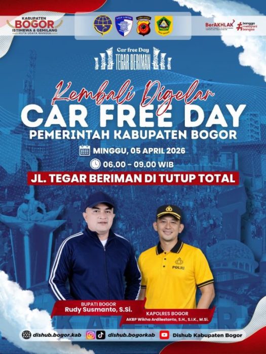 Bogor, POVIndonesia.com – Pemerintah Kabupaten (Pemkab) Bogor akan menggelar kembali kegiatan Car Free Day (CFD) di kawasan Jalan Tegar Beriman, Cibinong, pada Minggu, 5 April 2026. Kegiatan yang berlangsung mulai pukul 06.00 WIB hingga 09.00 WIB tersebut akan disertai penutupan total ruas jalan untuk mendukung kelancaran acara yang dipusatkan di sepanjang Jalan Tegar Beriman.