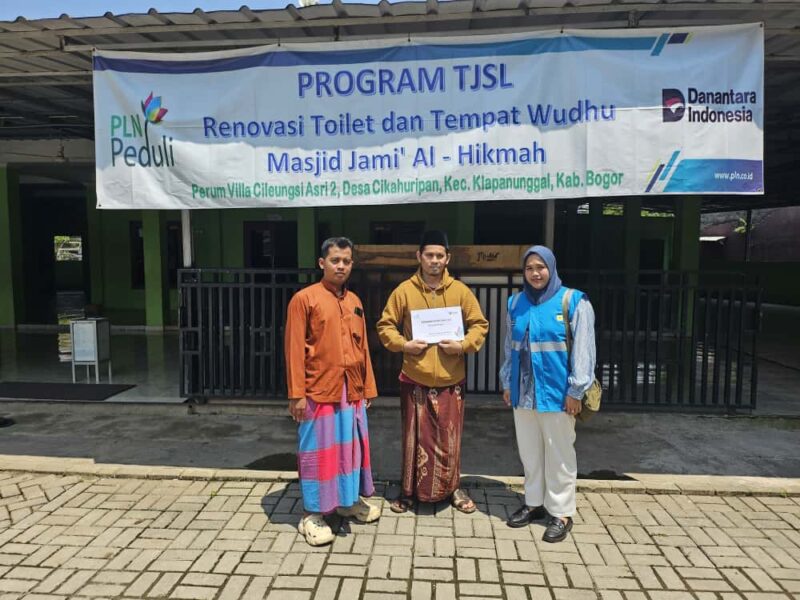 Cileungsi Bogor, POVIndonesia.com – Dalam upaya mendukung pembangunan sarana ibadah dan mempererat hubungan dengan masyarakat, PLN UP3 Gunung Putri menyalurkan bantuan Tanggung Jawab Sosial dan Lingkungan (TJSL) untuk renovasi Masjid Jami’ Al Hikmah yang berlokasi di Perumahan Villa Cileungsi Asri 2, Kecamatan Klapanunggal, Kabupaten Bogor.