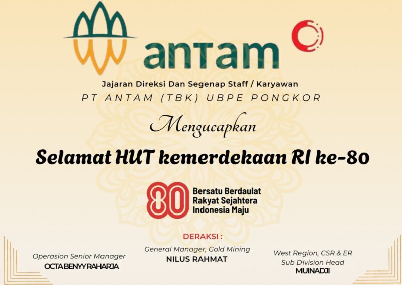 PT Antam TBK UBPE Pongkor Mengucapkan Selamat HUT Kemerdekaan RI ke-80