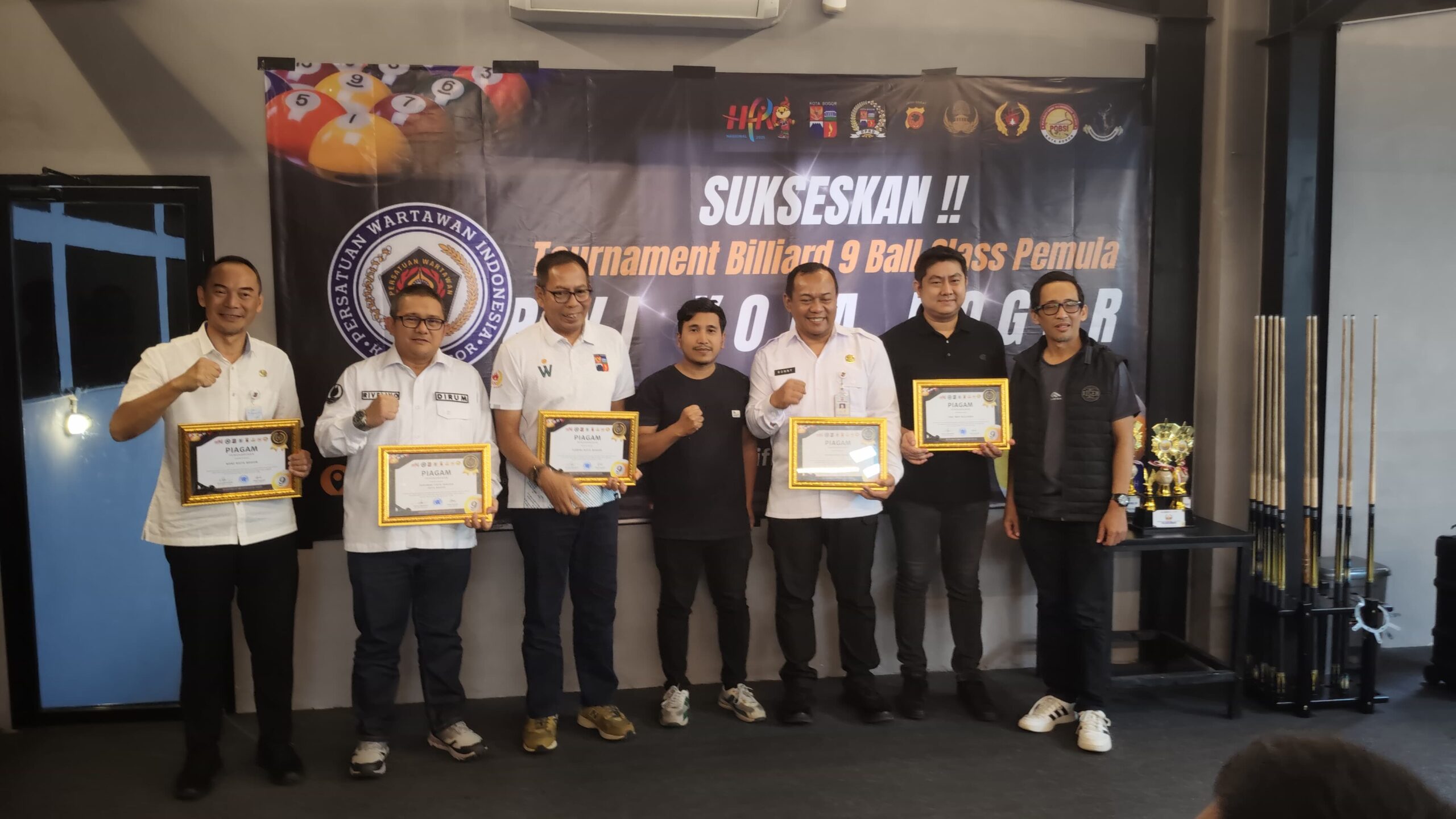 Bogor, POVIndonesia.com – Turnamen Biliard 9 Ball Class Pemula yang digelar oleh Persatuan Wartawan Indonesia (PWI) Kota Bogor, menjadi sarana mempersatukan berbagai pihak.