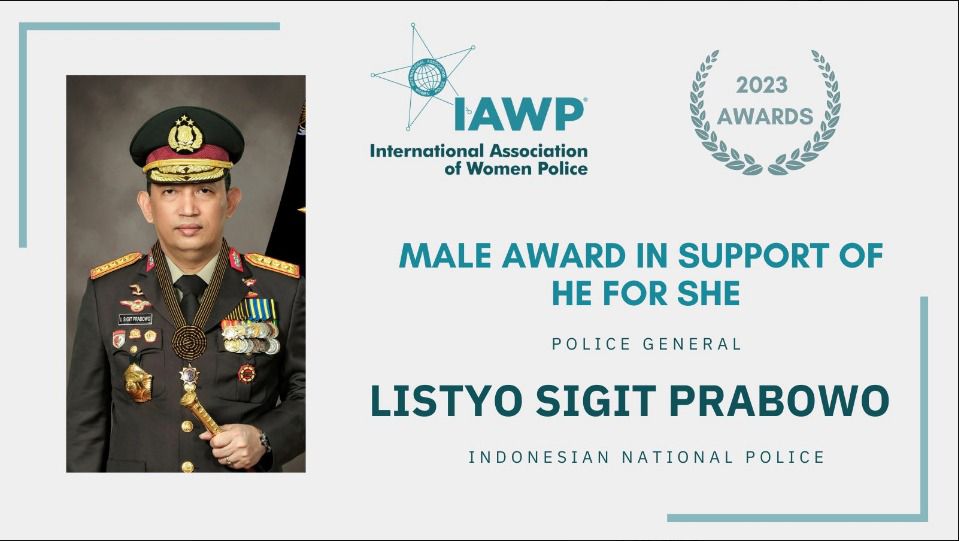 “Congratulations to our IAWP Awards 2023 He for She recipient, Listyo Sigit Prabowo of Indonesian National Police,” tulis pengumuman resmi IAWP, Jumat (05 Mei 2023).