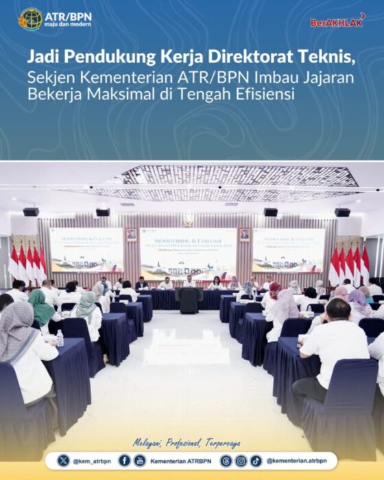 Jakarta, POVIndonesia.com – Peran Sekretariat Jenderal menjadi pendukung jalannya program Kementerian Agraria dan Tata Ruang/Badan Pertanahan Nasional (ATR/BPN). Demikian kata Sekretaris Jenderal (Sekjen) Kementerian ATR/BPN, Pudji Prasetijanto Hadi, saat memimpin Monitoring dan Evaluasi (Monev) Pelaksanaan Program dan Kegiatan Tahun 2025 di lingkungan Sekretariat Jenderal, di Aula Prona Kementerian ATR/BPN, Jakarta, Selasa (09/09/2025).