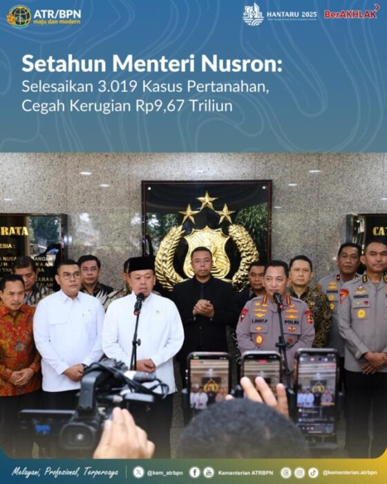 “Penyelesaian konflik pertanahan bukan hanya soal kepastian hukum, tapi juga penyelamatan aset negara dan perlindungan hak masyarakat. Tanah harus menjadi sumber kesejahteraan, bukan sumber masalah,” tutur Menteri ATR/Kepala BPN, Nusron Wahid dalam keterangannya pada Jumat (24/10/2025).